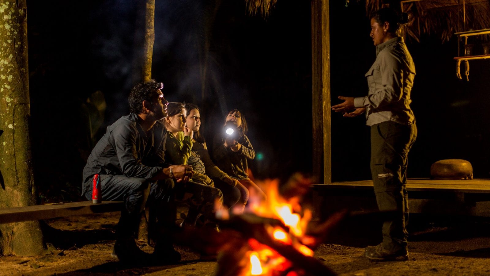 Desde tiempos ancestrales la sabiduría del bosque ha sido heredada por los Ese'Ejas en estas tierras. Ellos solían vivir completamente apartados del resto del mundo y todo lo que aprendieron vino de la observación de las interacciones de cada uno de los hábitats de la naturaleza. Nos reuniremos alrededor de un círculo de fuego y escucharemos de ellos mismos algunas de las historias más mágicas explicando lo sencillo que es su estilo de vida y lo conectados que estamos con las leyendas Ese'Eja del bosque y un momento cálido para conectar aún más con la naturaleza, el regalo de la naturaleza es ideal para conectar a nuestros hijos a través de las historias del bosque.